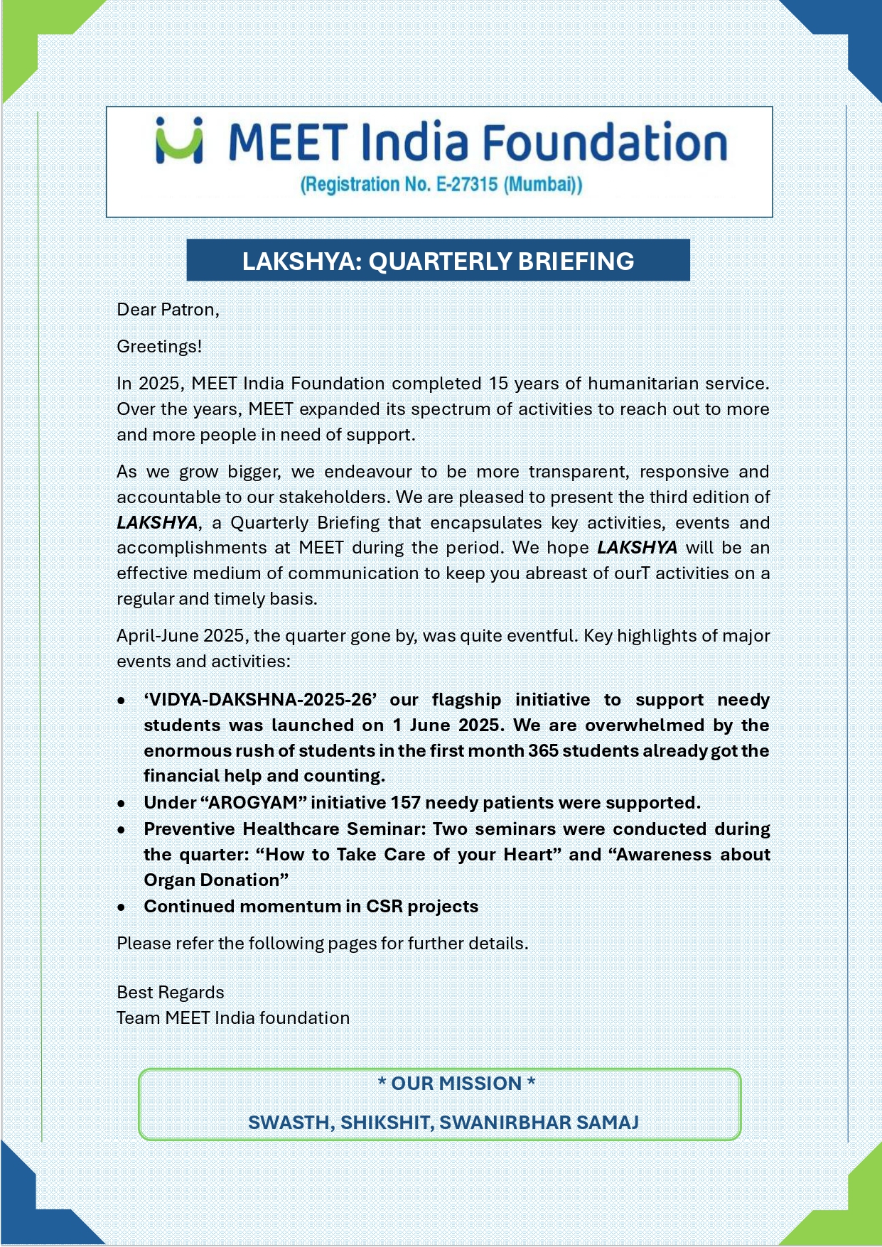 MEET India Foundation Quarterly (April 2025 - June 2025) Briefing: "LAKSHYA"